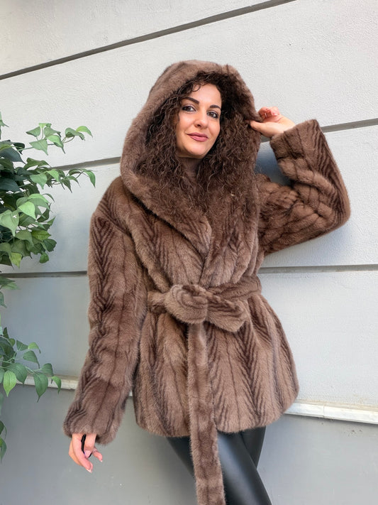 -Eco fur con cappuccio ampio -Chiusura con bottone -Cintura rimovibile -Tasche frontali Vestibilità morbida (...