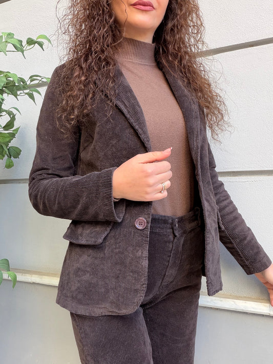 Giacca modello slim in velluto Millerighe,chiusura frontale con bottoncino La persona in foto è alta...