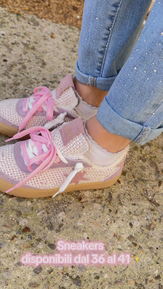 "Monì" Sneakers donna in pelle e tessuto con suola in caucciù