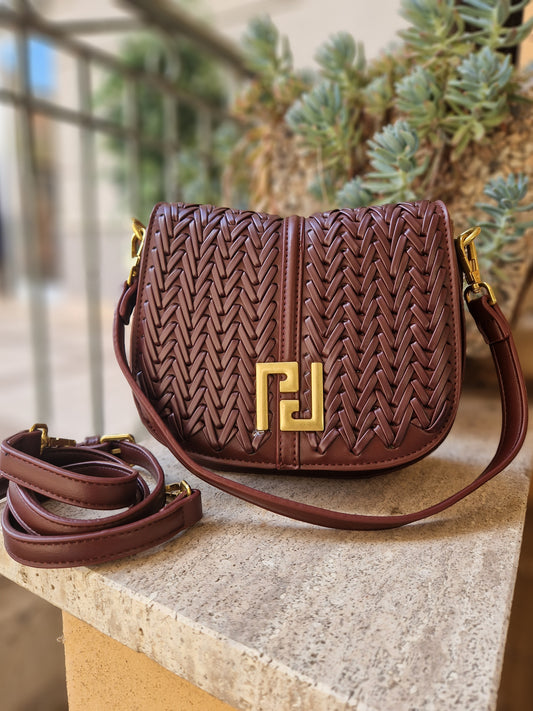 Borsetta con dettaglio intreccio sulla parte frontale, chiusura a clip con bottone calamita, zip interna ...