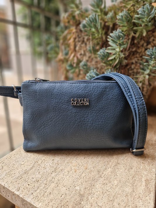 Borsa con tracolla regolabile,tessuto effetto martellato con 3 tasche frontali chiusura con zip chiusura con...