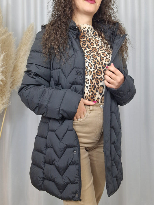 Giubbino donna con cappuccio removibile Vestibilità slim.Tasche a scomparsa davanti Chiusura frontale con zip e...