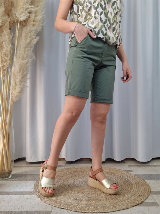 Pantaloncino da donna vita alta.Elastico in vita. Senza chiusura.Passanti per cintura, cintura regolabile inclusa. Composizione:97%...