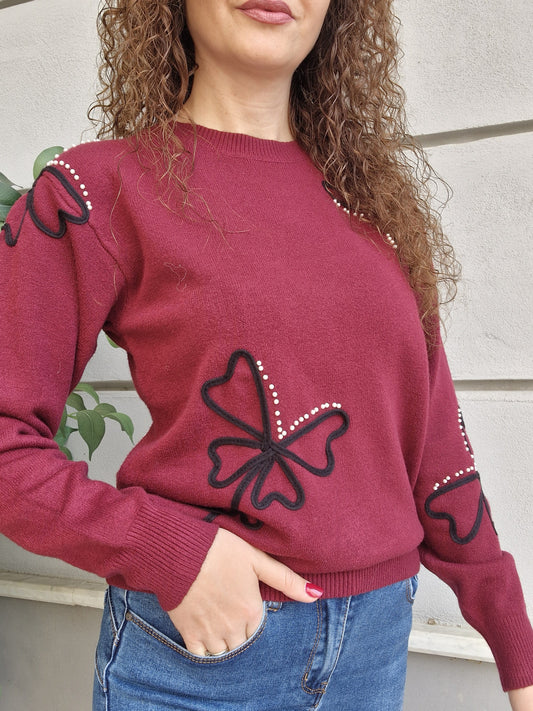 Morbidissimo maglioncino con dettagli fiori in 3d sulla parte frontale, Manica lunga. La persona in...