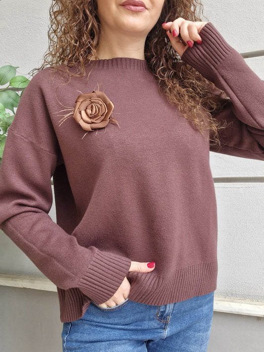 Morbidissimo maglioncino con dettaglio spilla removibile, scollo tondo manica lunga La persona in foto è...