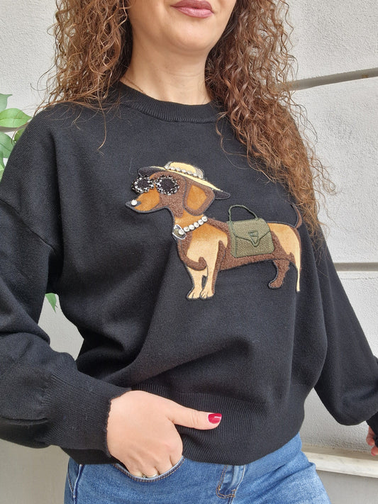 Morbidissimo maglioncino con dettaglio bassotto sul davanti, dettagli in 3d, Manica lunga. La persona in...