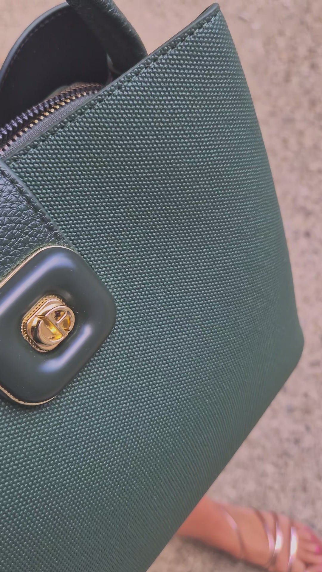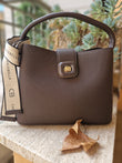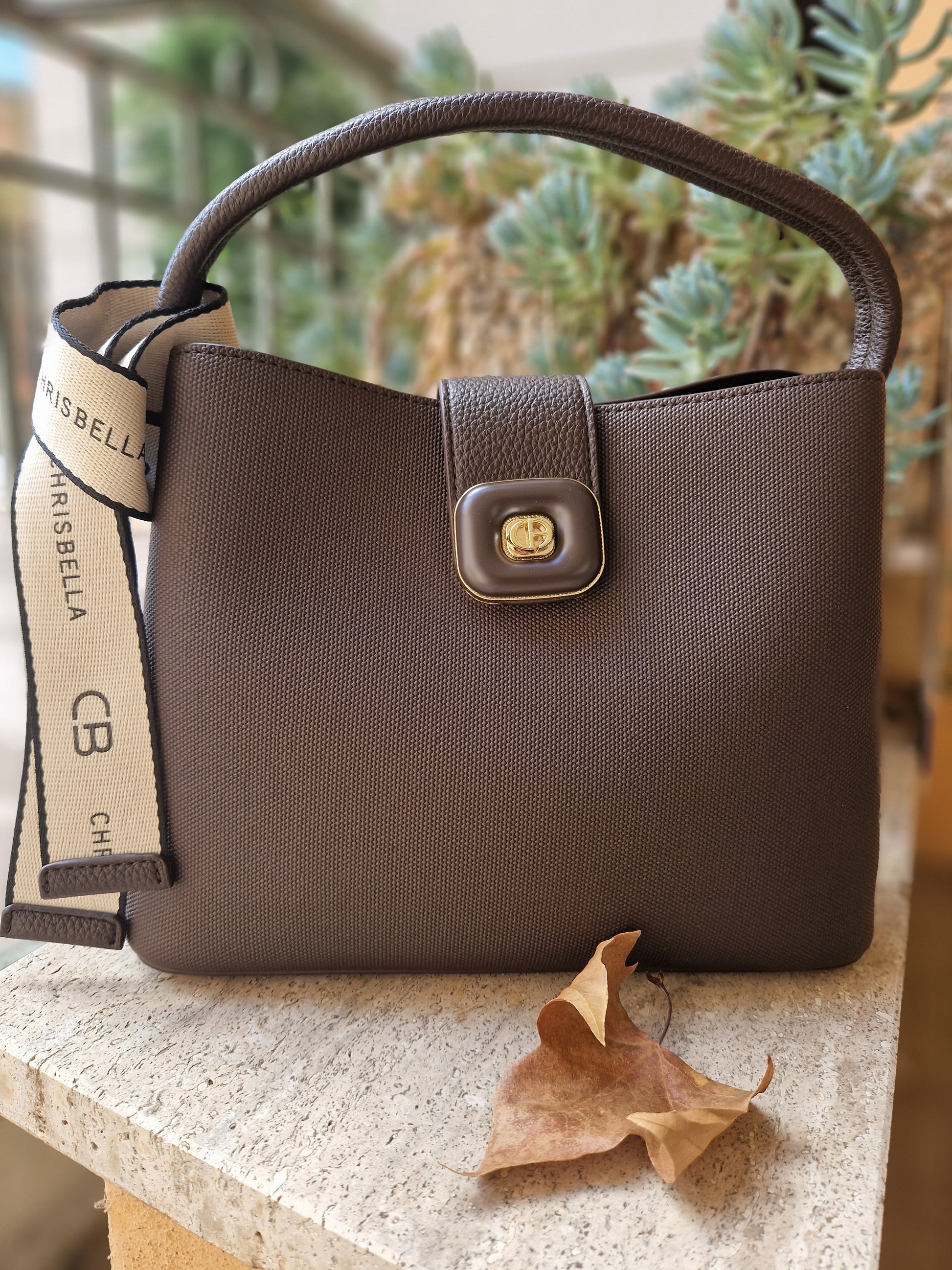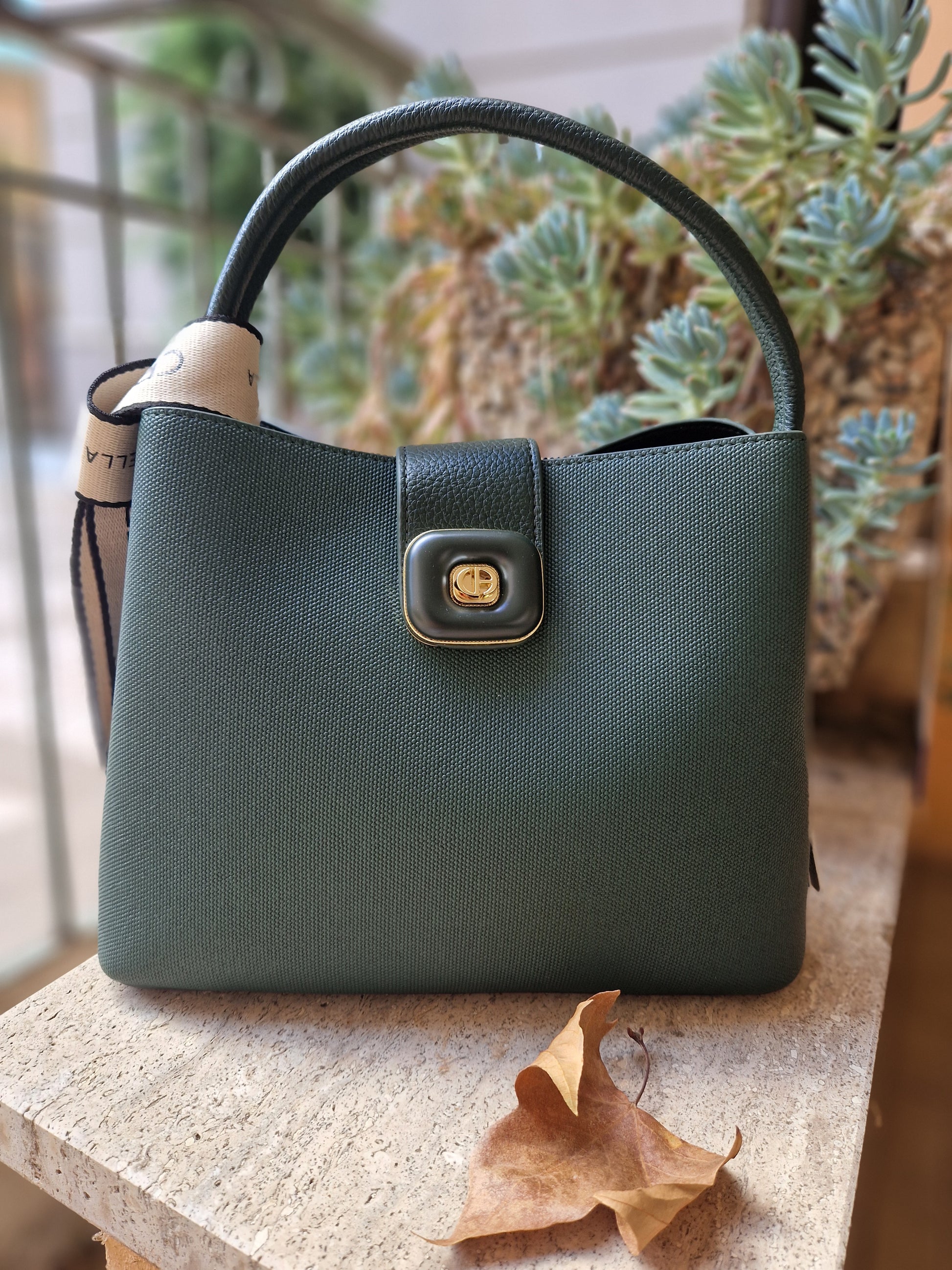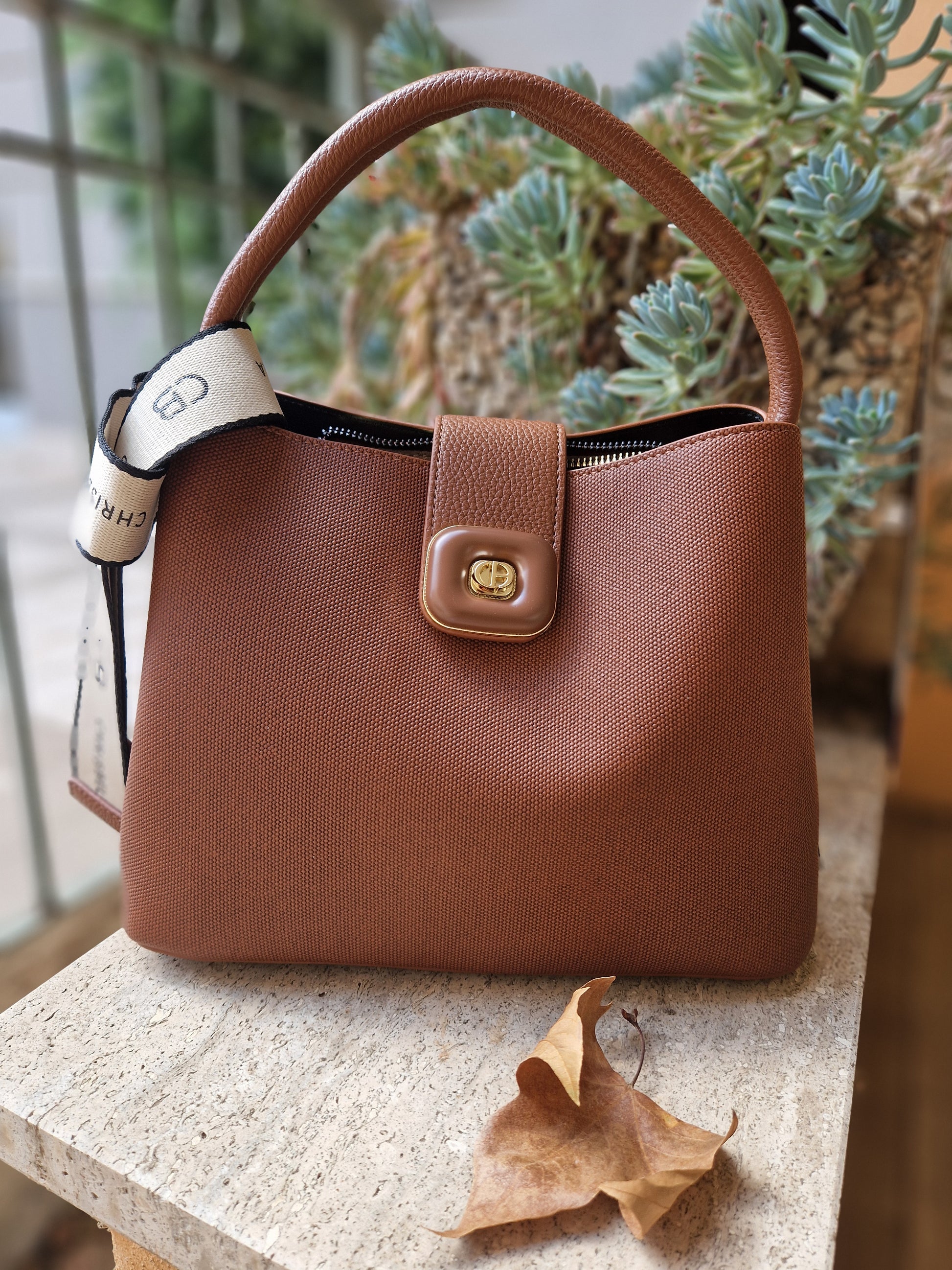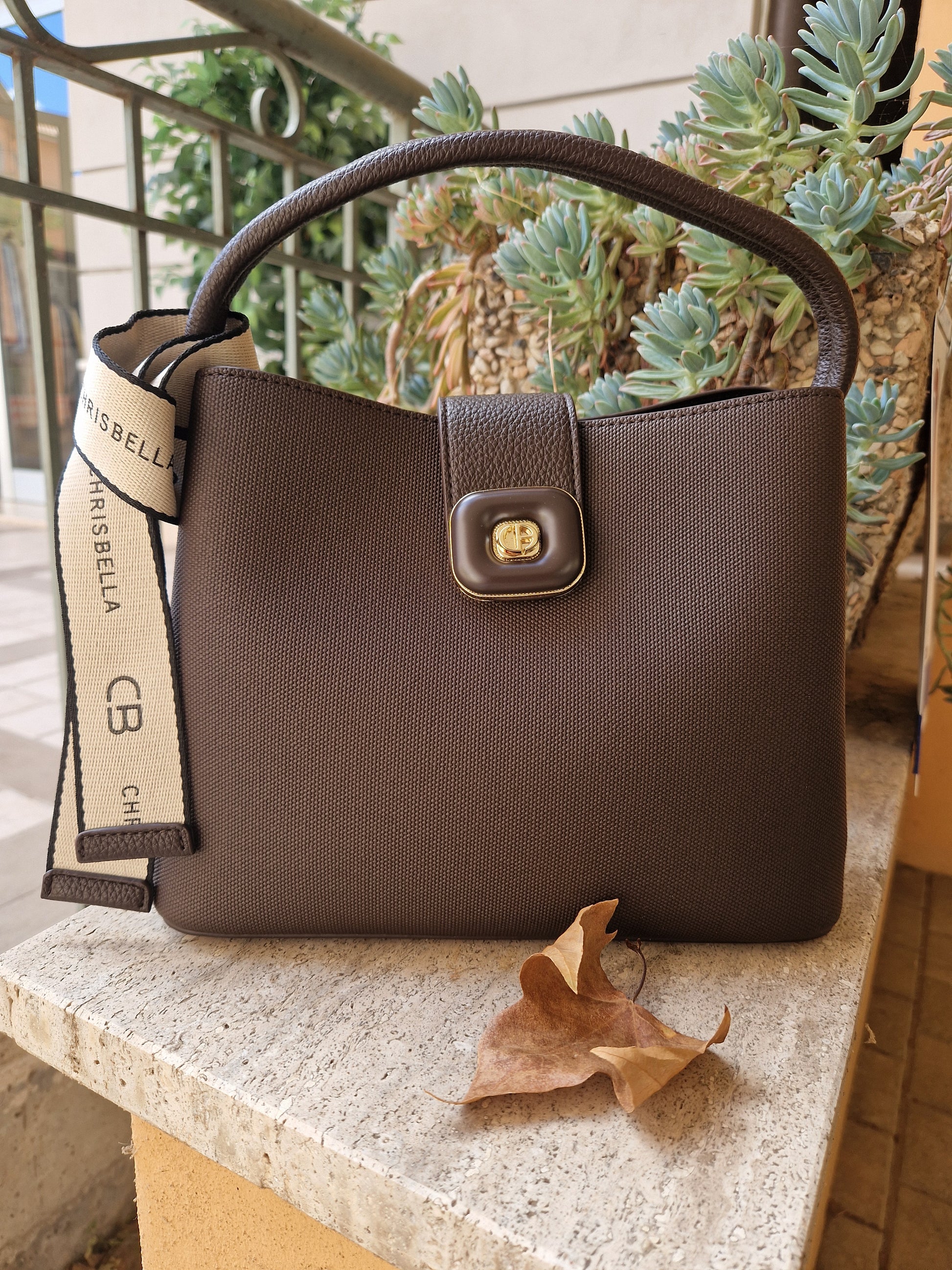 Bauletto con tracolla regolabile, tasche interne con zip, chiusura frontale con bottone clip