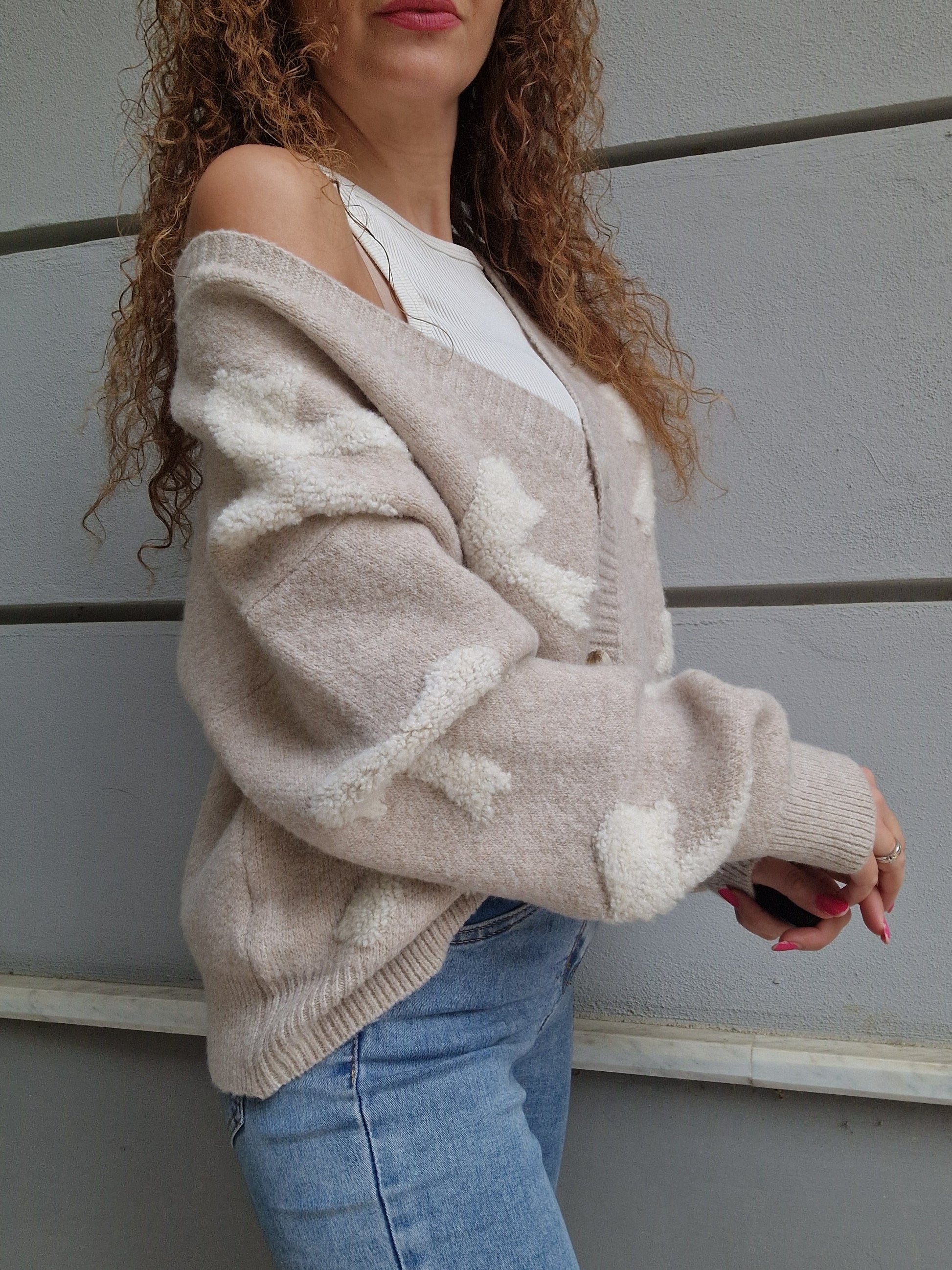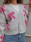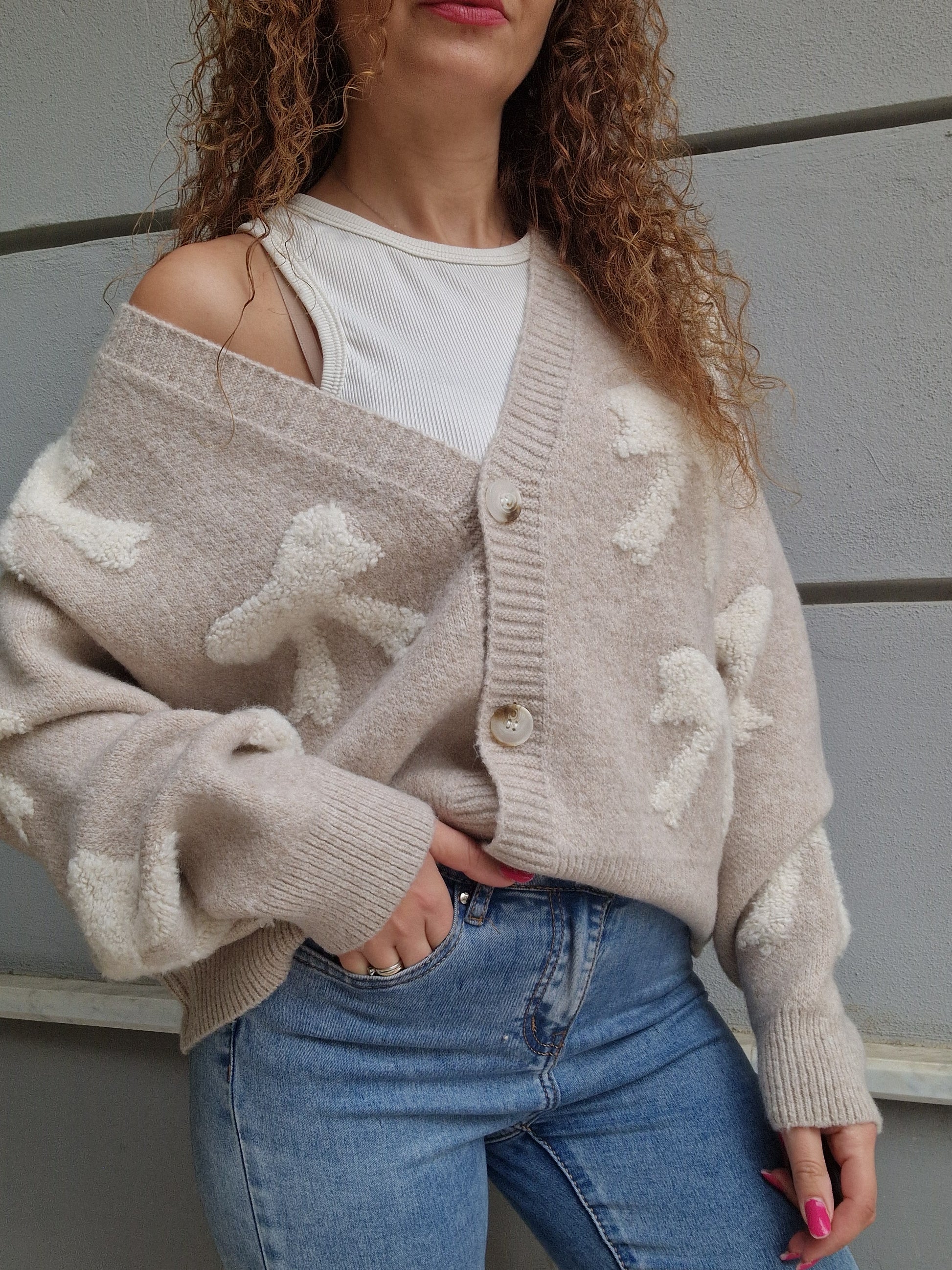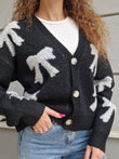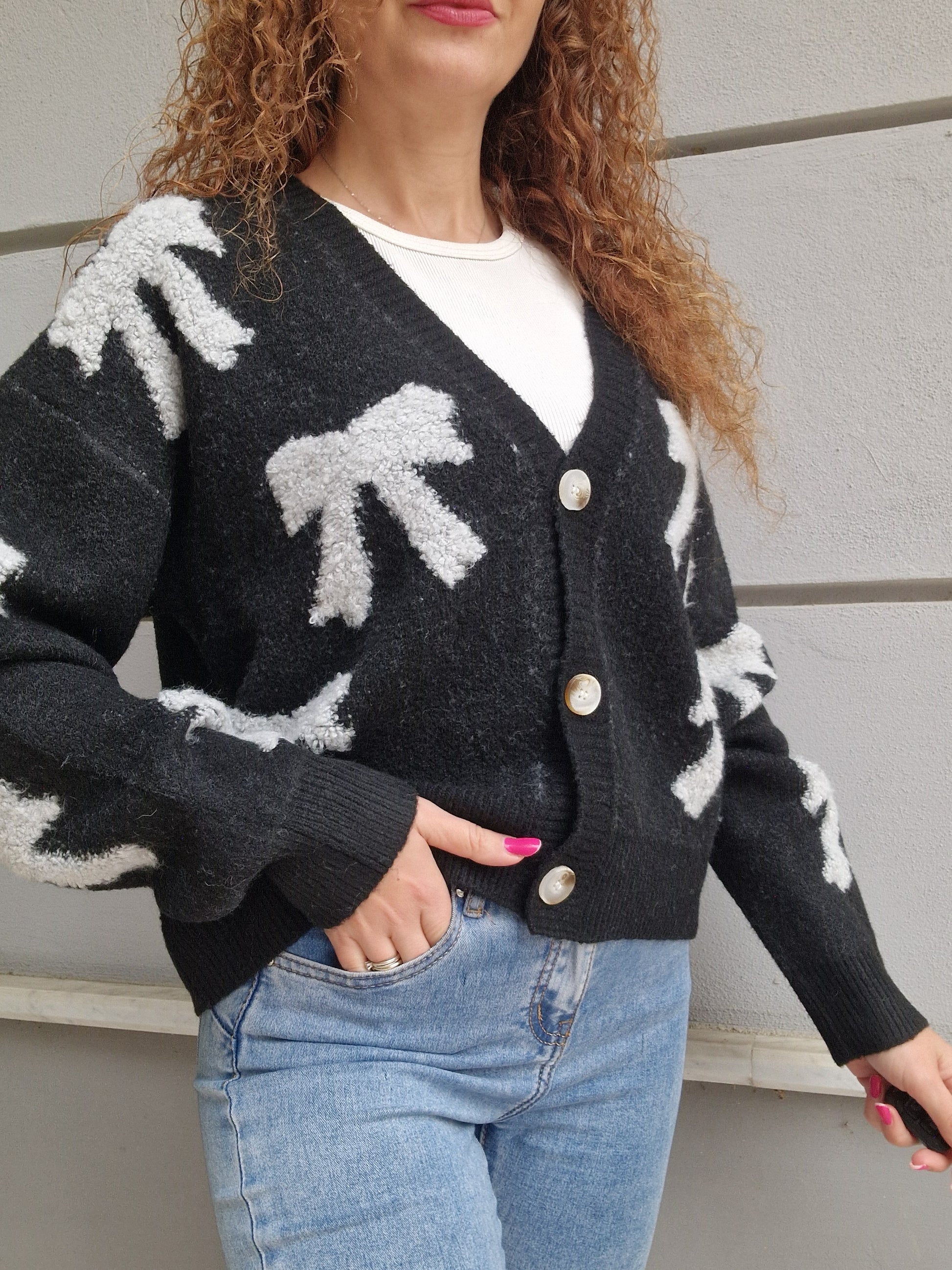 Morbidissimo cardigan con dettaglio fiocchi, bottoni gioiello scollo a V, Manica lunga.