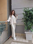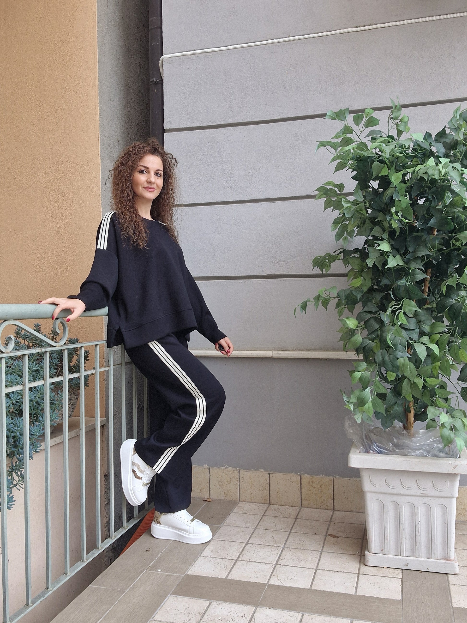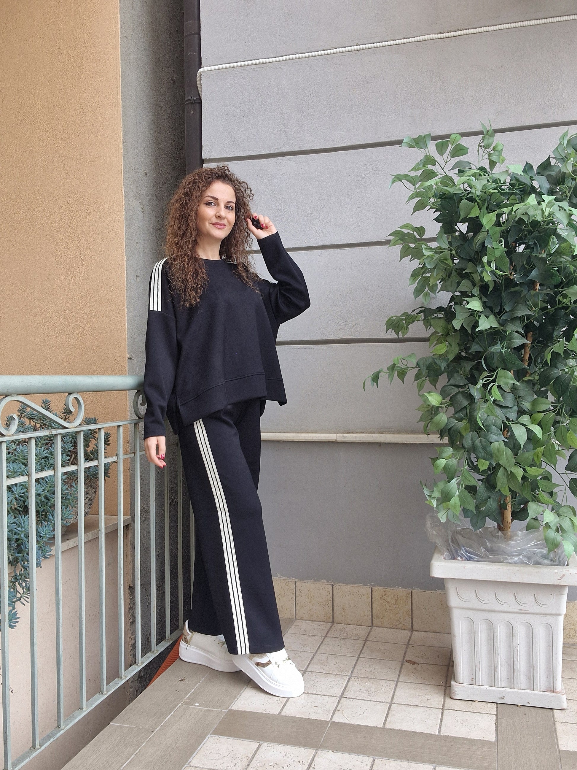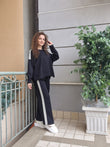Completo tuta con felpa oversize Pantalone a palazzo vita alta,comodo con elastico in vita.tasche davanti