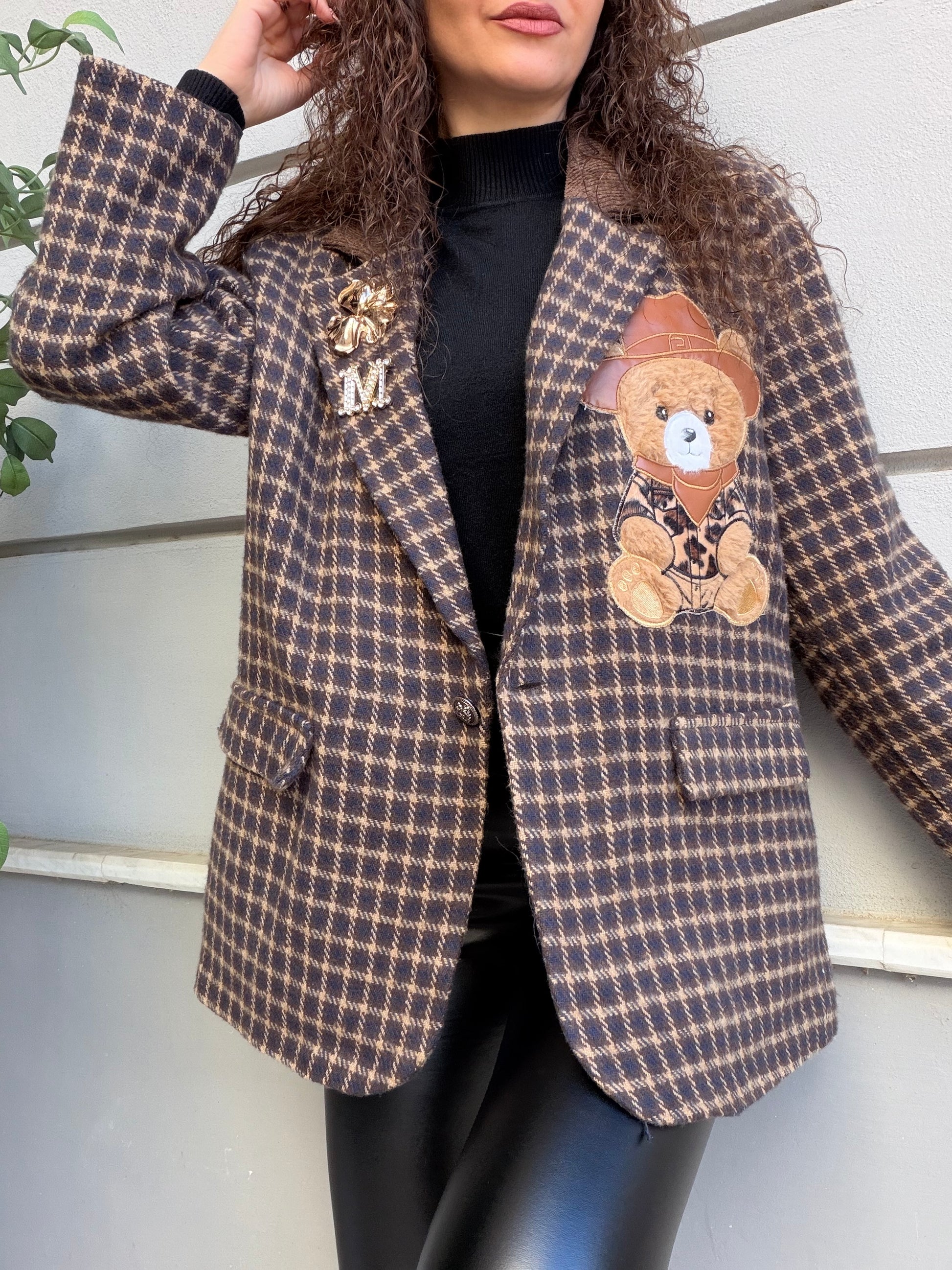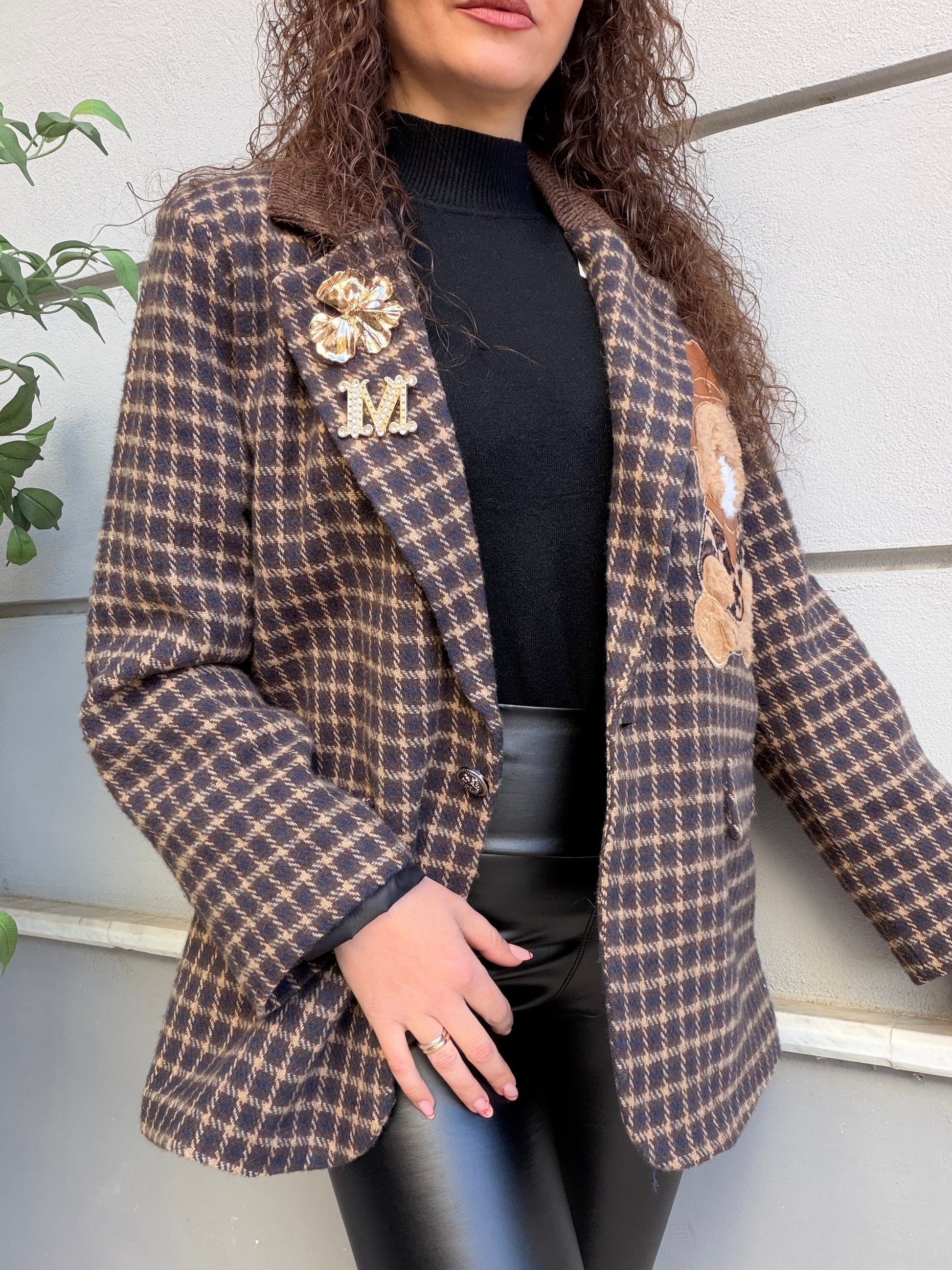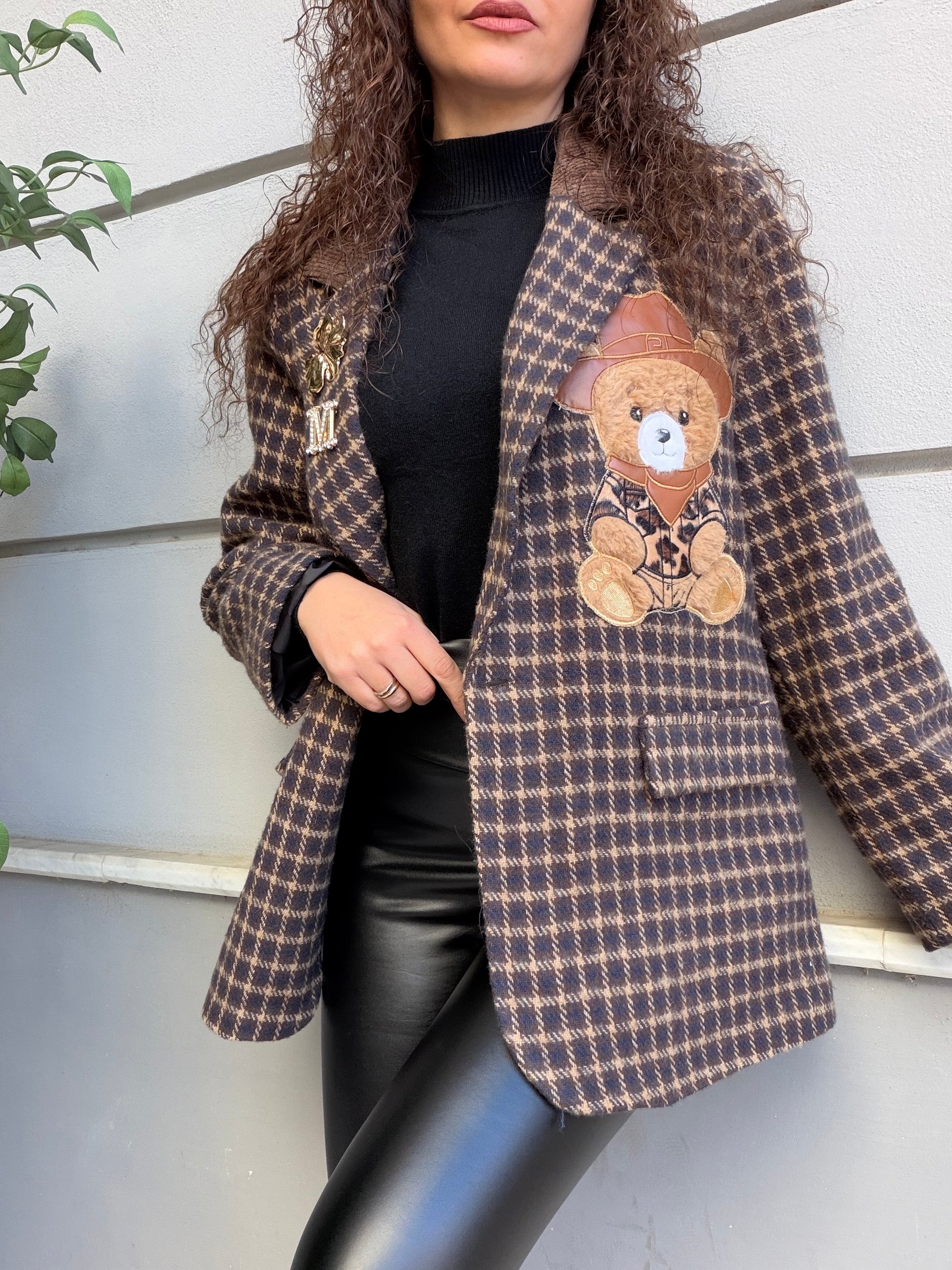 Giacca a quadri con teddy