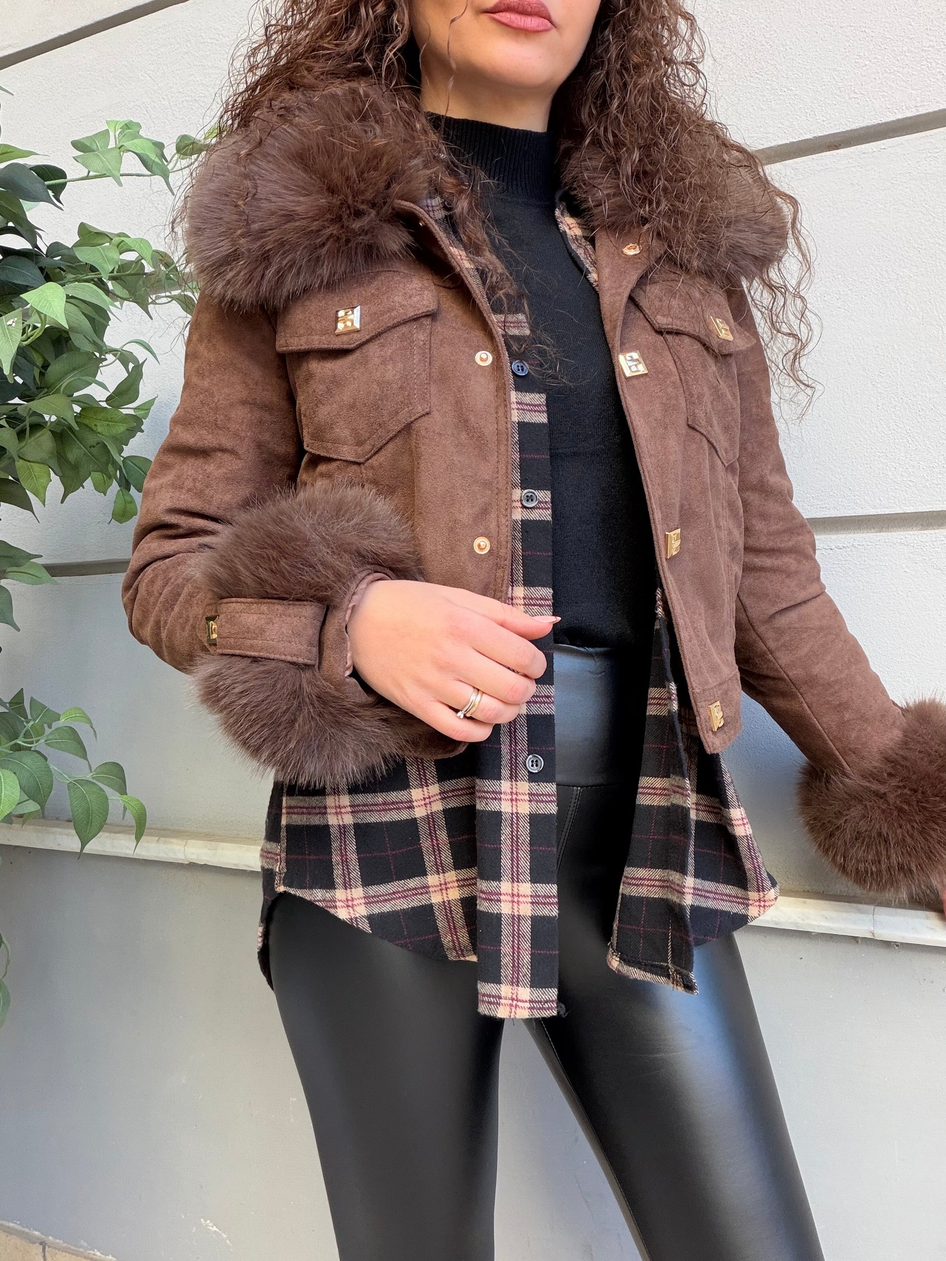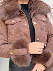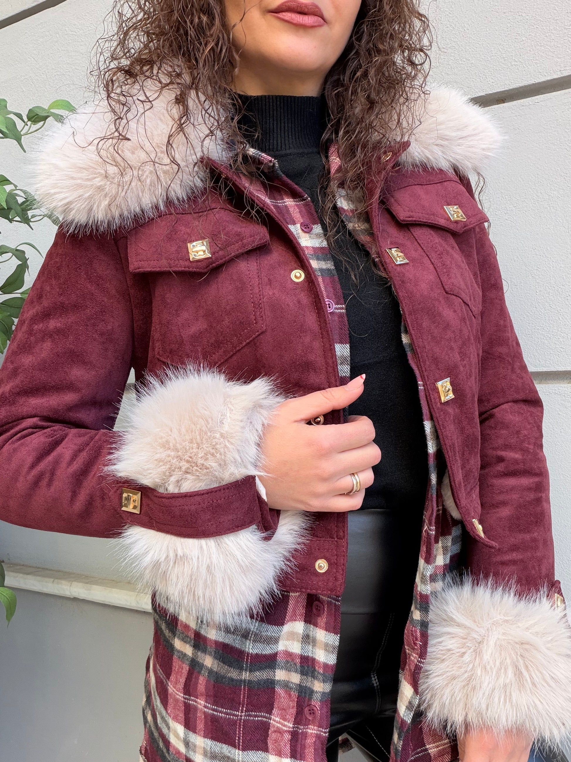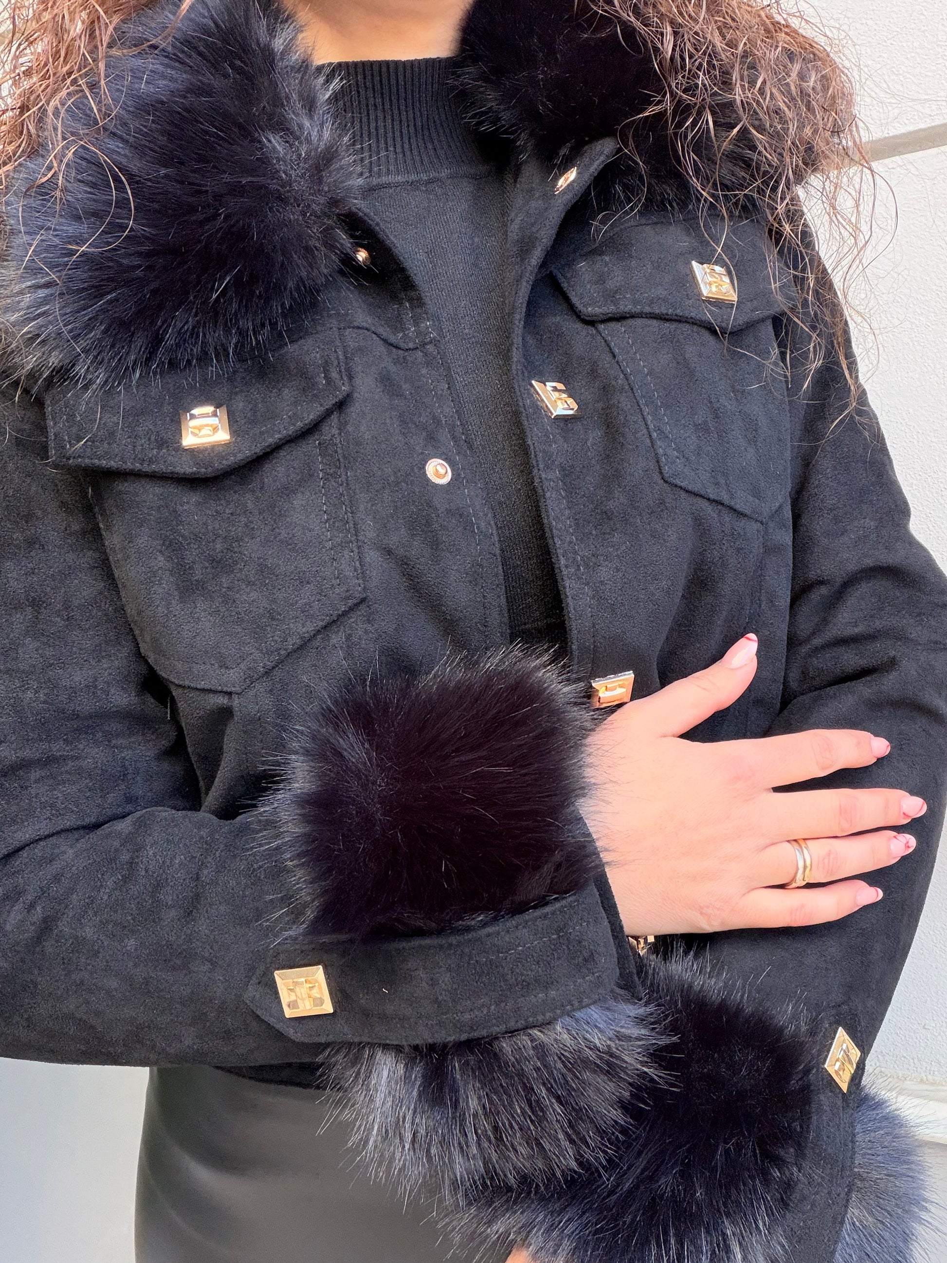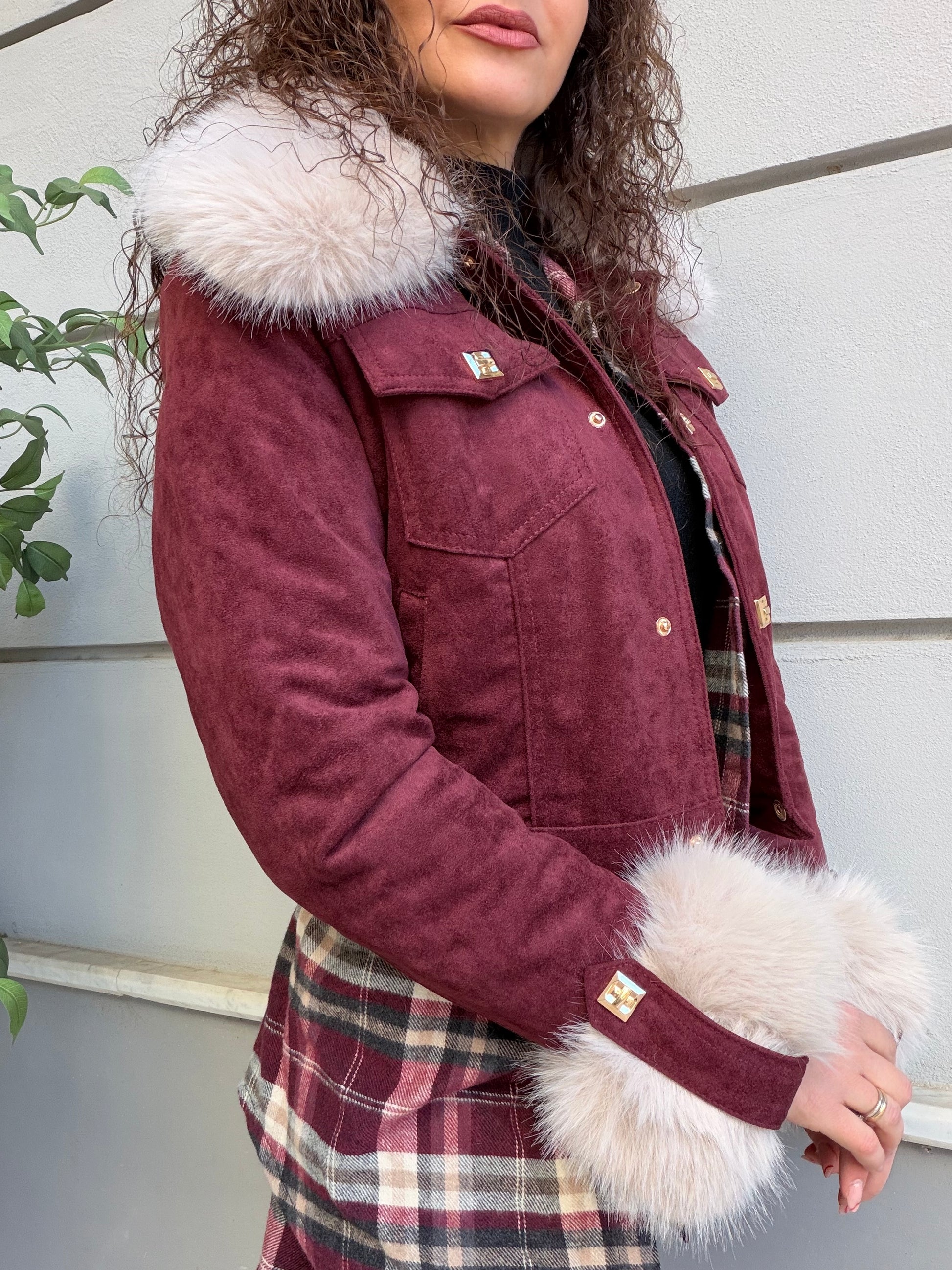 Giacca modello crop con dettaglio in ecopelliccia removibile, interno imbottito von calda ecopelliccia