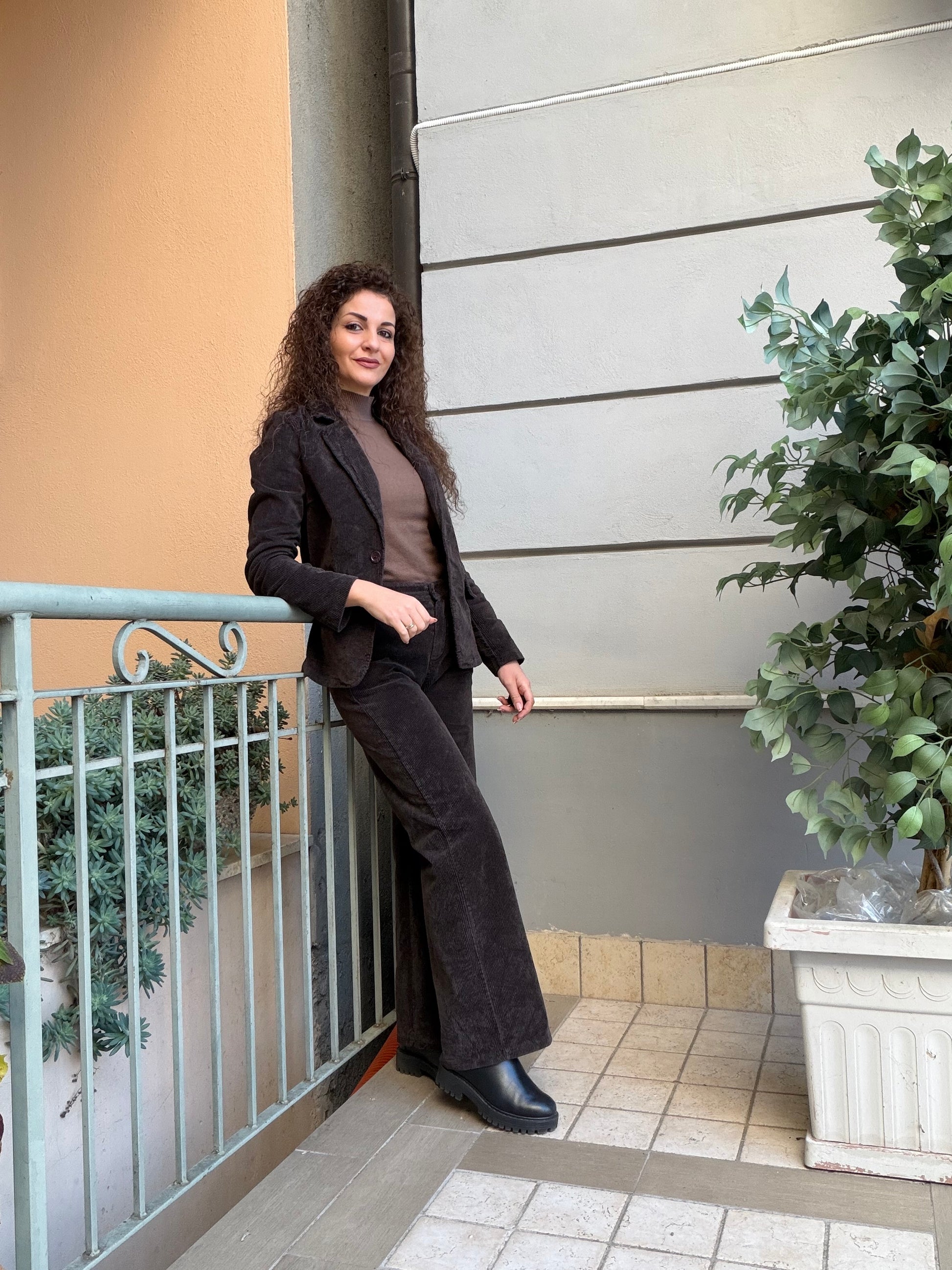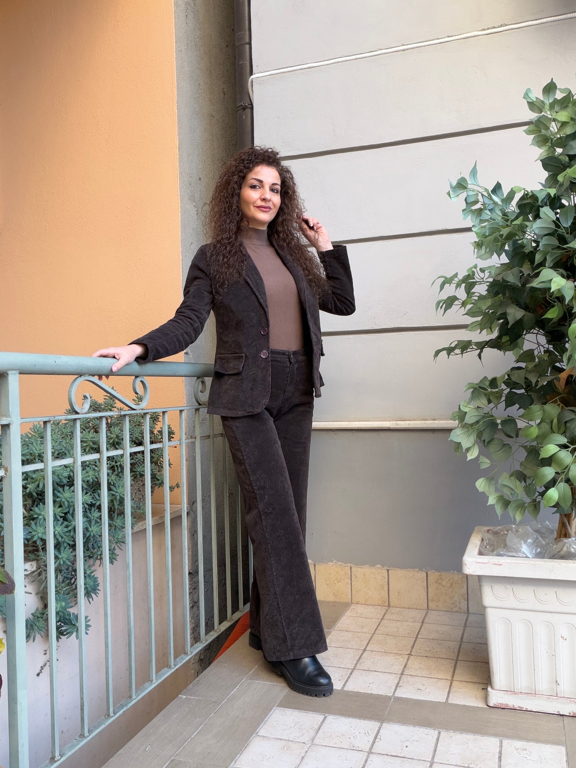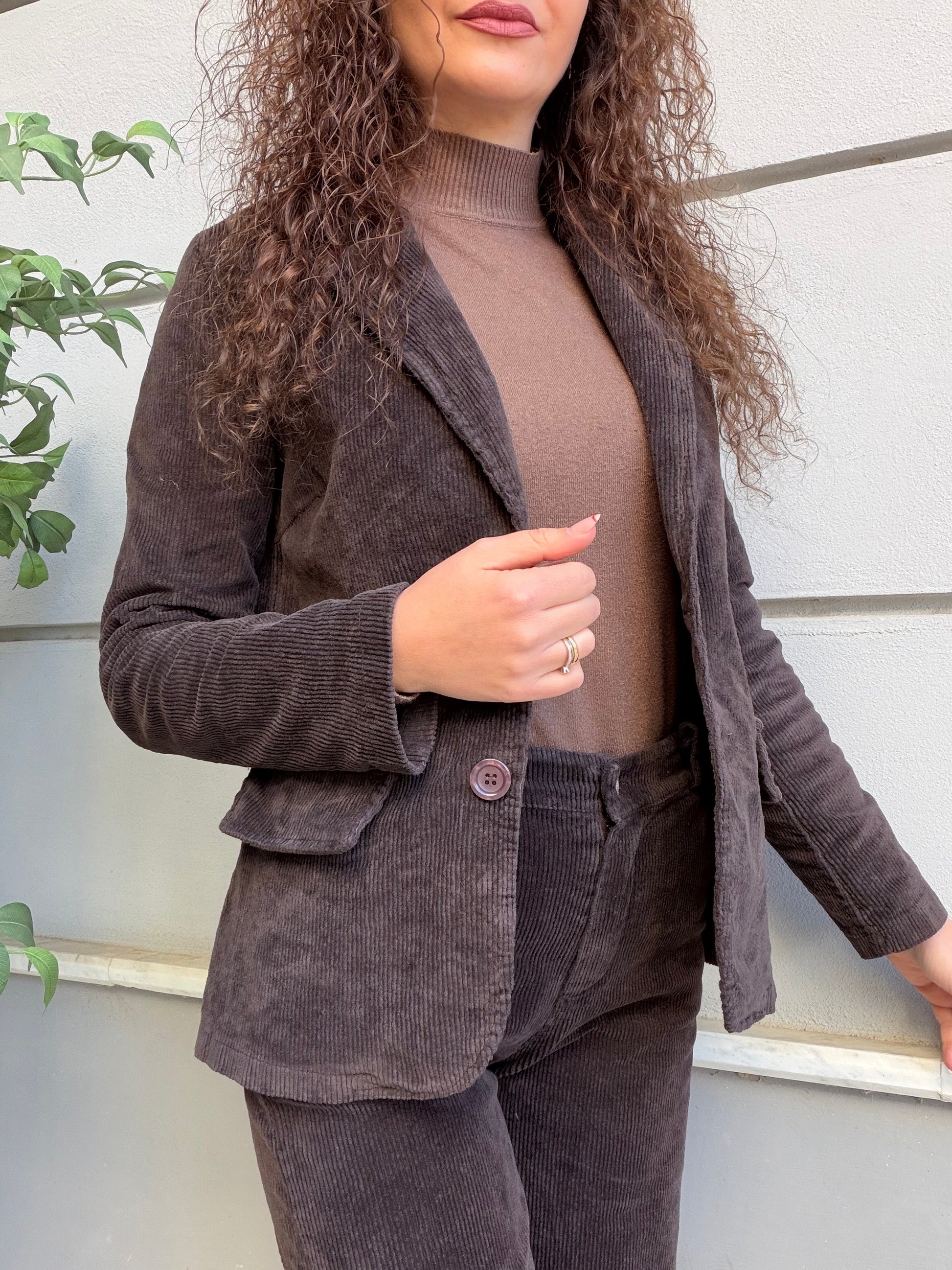 Giacca modello slim in velluto Millerighe,chiusura frontale con bottoncino