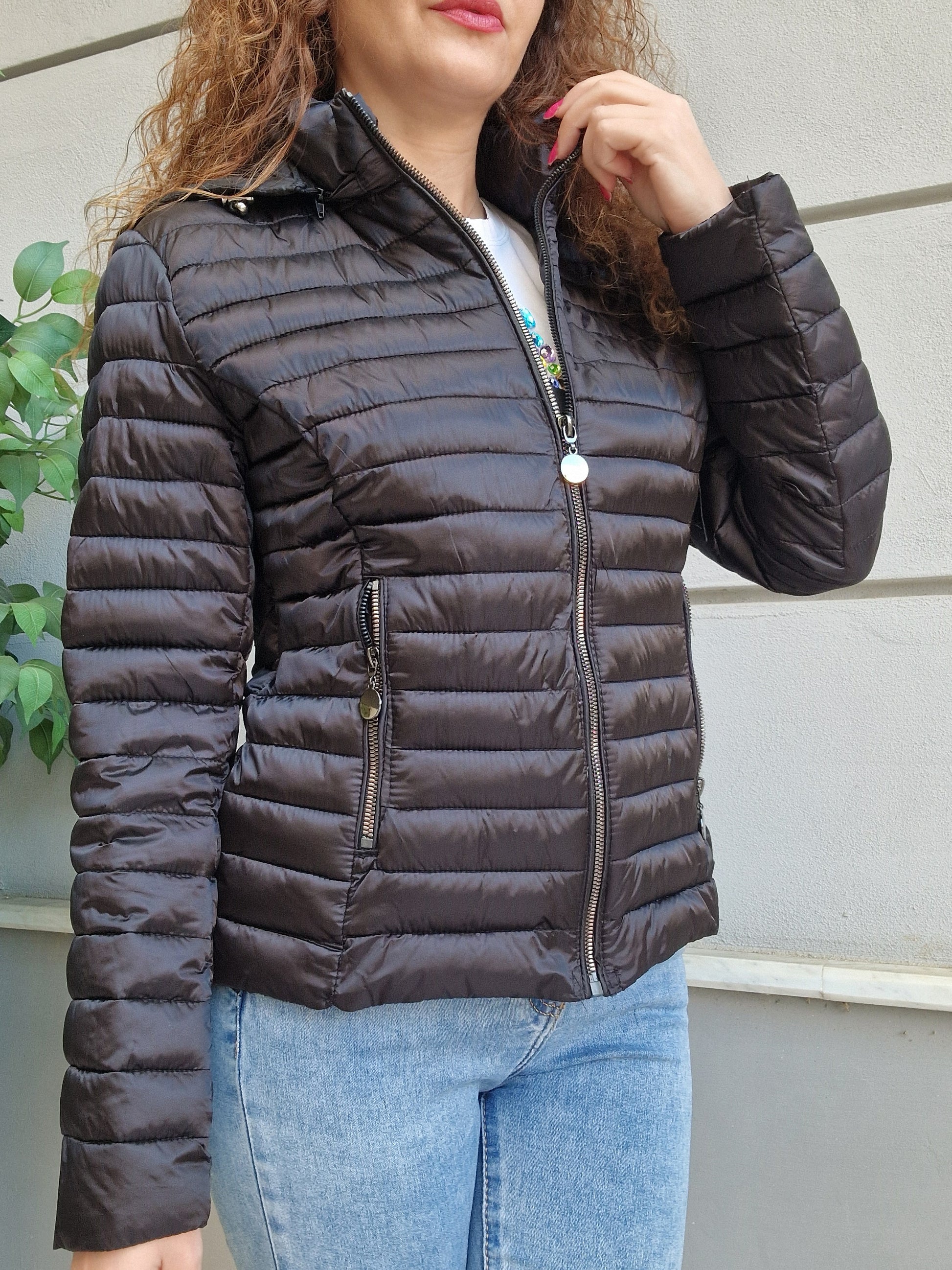 Chiusura con zip, tasche frontali,cappuccio removibile