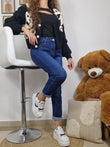 Jeans da donna modello mom fit vita alta basic,passanti per cintura in vita, tasche anteriori e posteriori