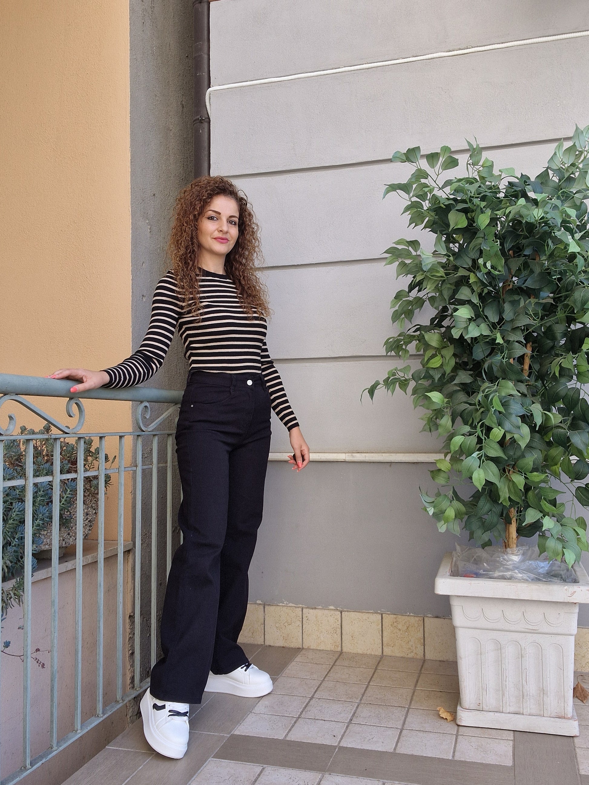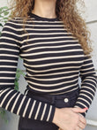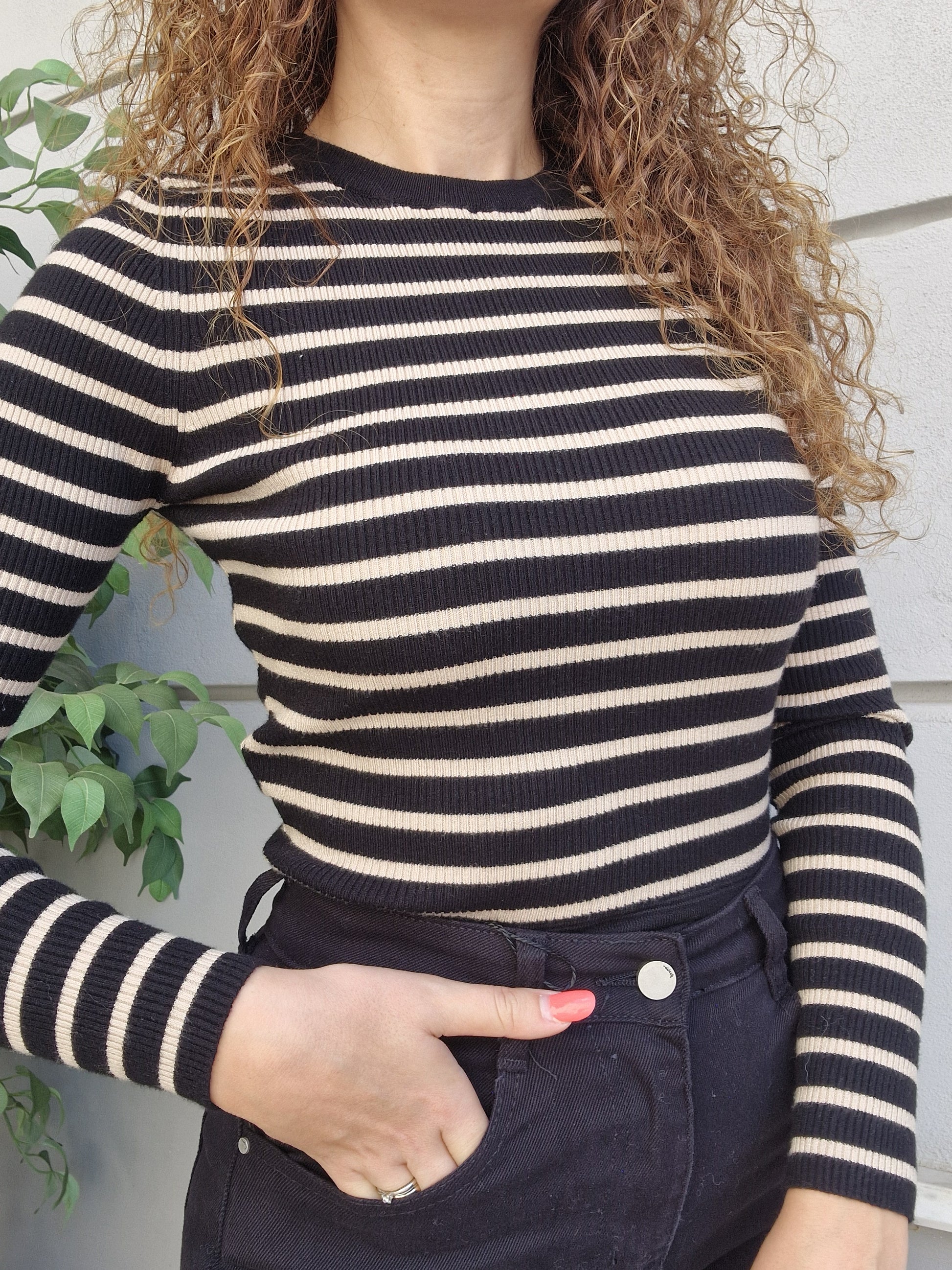 Morbidissima maglia a costine fantasia righe, scollo tondo, Manica lunga.