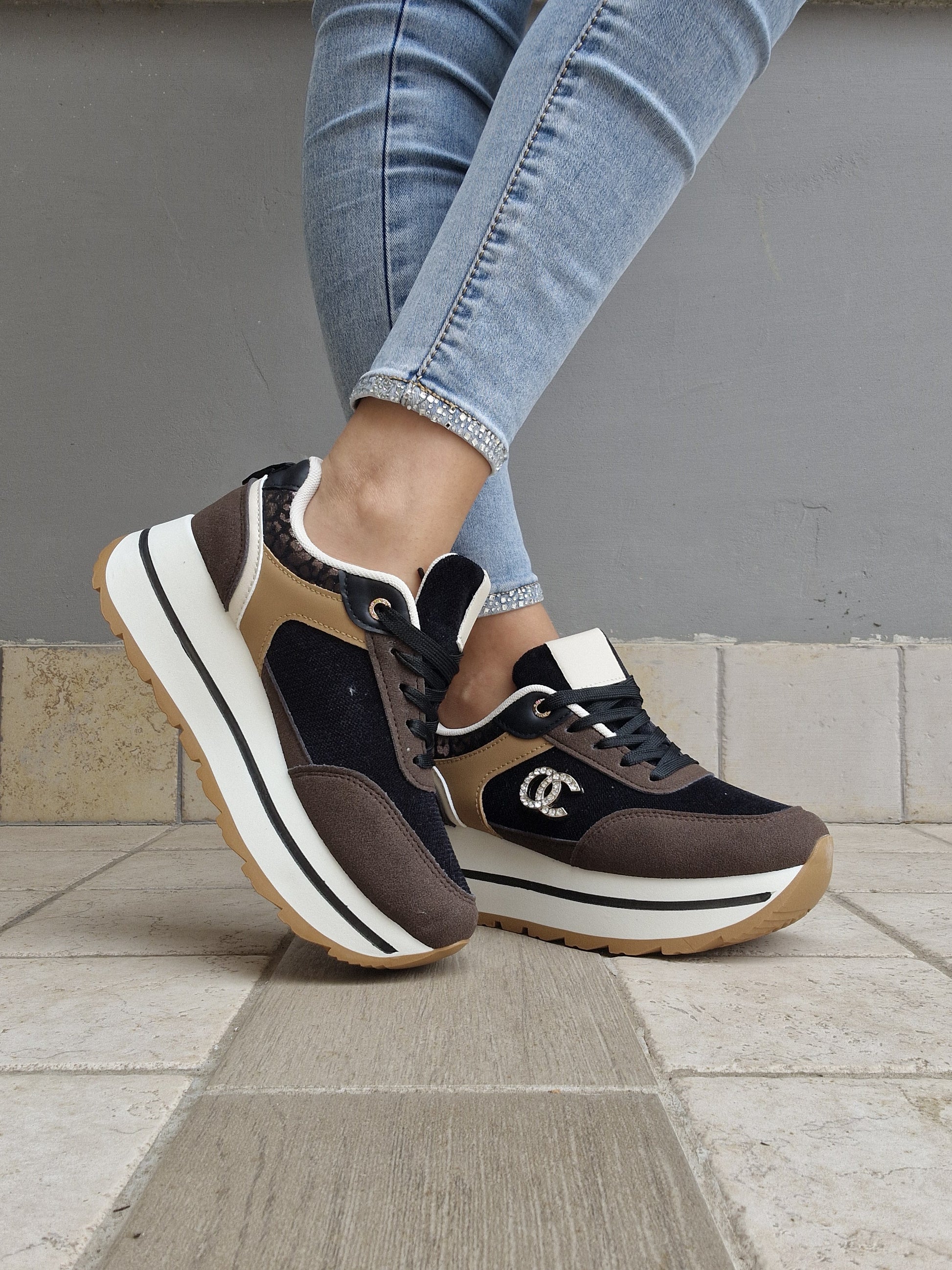Sneakers donna con dettagli lurex e applicazioni in 3d